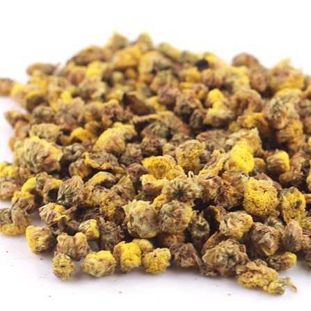 【药材】干燥的头状花序呈扁球形,直径0.5~1厘米,外层为15~20个舌状花,雌性,淡黄色,皱缩卷曲;中央为管状花,两性,长3~4毫米,黄色,顶端5裂,子房棕黄色,不具冠毛;底部有总苞,由20~25枚苞片组成,作覆瓦状排列成4层,苞片卵形或披针形,枯黄色,边缘膜质;各花均着生于半球状的花托上。味苦,继之有清凉感。