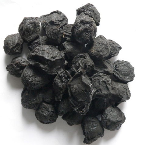 【药材】干燥果实呈扁圆形或不规则球形,直径1.5~3厘米。表面棕黑色至乌黑色,皱缩、凹凸不平。有的外皮已破碎,核露于外。果实一端有明显的凹陷(即果柄脱落处),果肉质柔软。核坚硬,棕黄色,内含淡黄色种仁1粒,形状及气味极似杏仁。气特异,味极酸。以个大、肉厚、核小、外皮乌黑色、不破裂露核、柔润、味极酸者为佳。