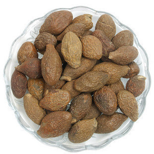 药材性状:本品呈纺锤形或椭圆形,长2~3cm,直径1~1.5cm。先端钝圆,基部略尖而歪,具浅色的圆形种脐,表面棕色或暗棕色,微有光泽,具不规则的干缩皱纹。外层种皮极薄,质脆,易脱落。中层种皮较厚,黑褐色,质松易碎,遇水膨胀成海绵状。断面可见散在的树脂状小点。内层种皮可与中层种皮剥离,稍革质,内有2片肥厚胚乳,广卵形;子叶2枚,菲薄,紧贴于胚乳内侧,与胚乳等大。气微,味淡,嚼之有黏性。