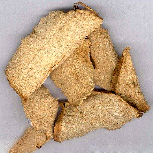 名称:粉萆?别名:萆?、黄萆?药用部位:根茎药材性状:为不规则的薄片。边缘不整齐,大小不一,厚约0.5mm。有的有棕黑色或灰棕色的外皮。。切面黄白色或淡灰棕色,维管束呈小点状散在。质松,略有弹性。气微,味辛、微苦。产地:浙江、广东、广西功能主治:利湿去浊,祛风除痹。用于膏淋,白浊,白带过多,风湿痹痛,关节不利,腰膝疼痛。用法用量:内服:9~15g;或入丸散;或浸酒。