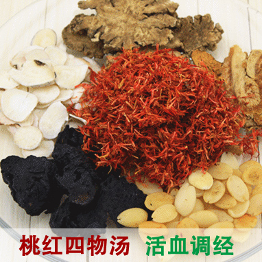在四物汤(当归8克,川芎6克,白芍10克,熟地8克)基础上加入:桃仁7克红花4克